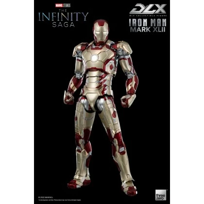 Threezero and Marvel Studios are excited to present the DLX Iron Man Mark 42 as the next figure in the Marvel DLX series. The Mark 42 armor adopts a shimmering gold as the main tone with red as its secondary color, and a multi-layer metallic coating process is applied to accurately replicate the design of Tony Stark’s suit as seen in the movie Iron Man 3.